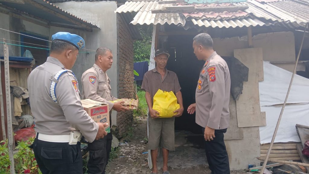 Dalam pelaksanaannya, Kapolsek bersama personel menyerahkan bantuan sembako kepada tiga warga yang membutuhkan, yakni Mah Toel (62), Amat Jais (53), dan Bukirah (52).