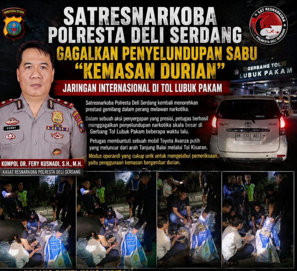 Adapun rincian barang bukti yang disita meliputi 50 Bungkus Sabu yang dikemas rapi dalam kemasan “Bergambarkan durian” untuk menyamarkan isi.